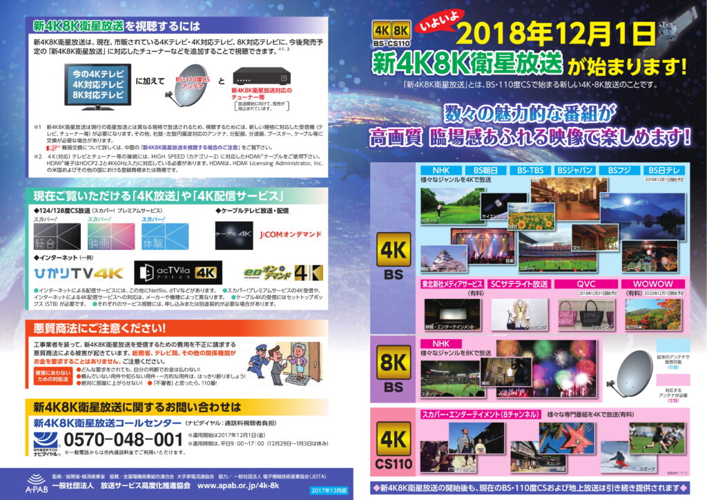 2018年12月より、地上デジタル放送よりも高画質な放送が、BSとスカパーでスタートしました。